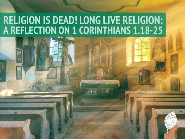 But, we might say, “Religion is dead! Long live religion.” I started this two-part reflection by saying that humans are inherently religious. And so even as our Gospel proclaims the end of religion, religion has always been alive and well. There are to this day Christians who seek after signs and wonders, Christians who demand intellectually satisfying belief systems, and Christians who love ritual. Over the decades, I’ve found myself alternately in each of these camps and raging against them. Where I’m at now is more of a peace with them. Christianity always involves a tension between the ‘now’ and the ‘not yet’, and between the ‘old man’ Adam and the ‘new man’ Jesus. The Kingdom of God is within and among us; the Kingdom of God is still coming. And so it stands to reason that this tension will also manifest in our religious expressions. Signs and wonders, philosophical and theological systems, liturgical and ritual symbols — these things will necessarily continue even as we recognize that they are fundamentally marginalized and revealed as inessential by the Gospel truth of the way of the cross.