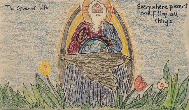 After a week off because of my company, it was lovely to regroup with my mini book club about Wilkie Au and Noreen Cannon Au’s The Discerning Heart (2006). I also enjoyed reading on to this week’s chapter, which was all about images of God. The premise, taken from the parable of the talents is that we experience the God we imagine: If our image of God is cruel and stingy, we’re likely to experience a cruel and stingy God, whereas if our image of God is generous and loving, we’re far more likely to experience God’s grace and love (see Matthew 18). I had this incredible urge as I was reading to draw a picture of my dominant images of God, and it was interesting to see what surfaced. (Don’t worry; it was placed safely inside a mandorla, a symbol our iconographic traditions use show that what’s inside represents a spiritual truth and not sensible fact!)