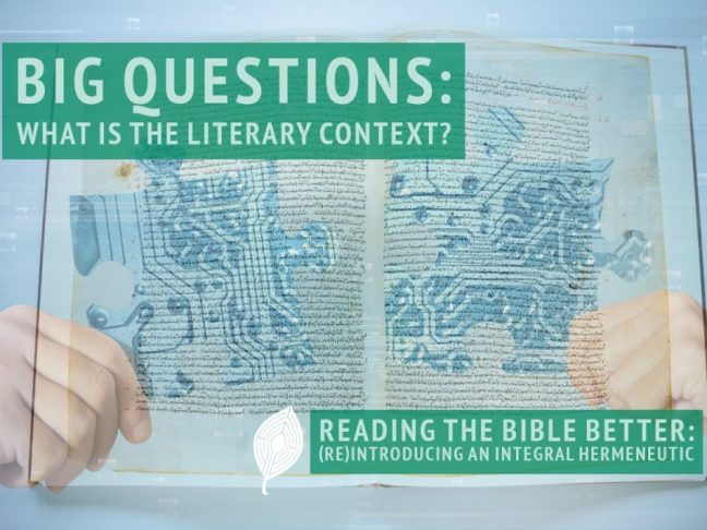 In the most recent post in this series on the ‘big questions’ that can help us read the Bible better we looked at the importance of understanding historical and cultural context. Today’s big question is also about the context of a given text, but is about the text in its immediate surroundings: What is the literary context? Literary context is again a broad category, but includes such ideas as genre and form, social register (i.e., how simple or ‘fancy’ a text is), and rhetorical strategies, as well as more basic things like what the passage is doing, and what comes before it and after it.