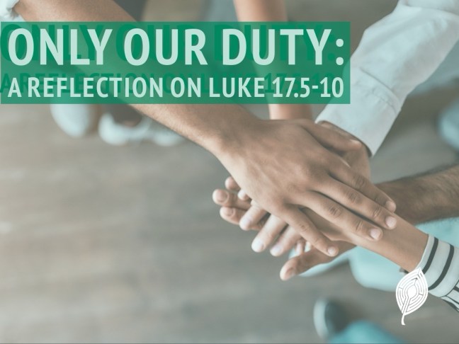 In our highly individualist, consumer-driven culture, we often (hopefully unintentionally) bring our customer mentality to spirituality, as though God should be happy for our business and trip over Godself to ensure we have a positive experience and 'meet our needs'. But of course, we’re dealing with the infinite creator of the universe here, and so … Continue reading Only Our Duty: A Reflection on Luke 17.5-10