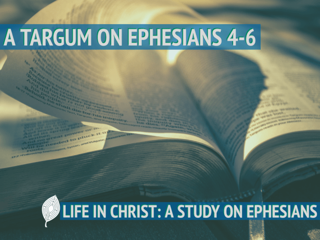 To bring together the themes of the studies in the first half of the series, I did a Targum — an extended paraphrase and application — of Ephesians 1-3. Today, I’d like to do the same for the second half of the book: (4.1) In light of all this, I — a prisoner for our … Continue reading A Targum on Ephesians 4-6